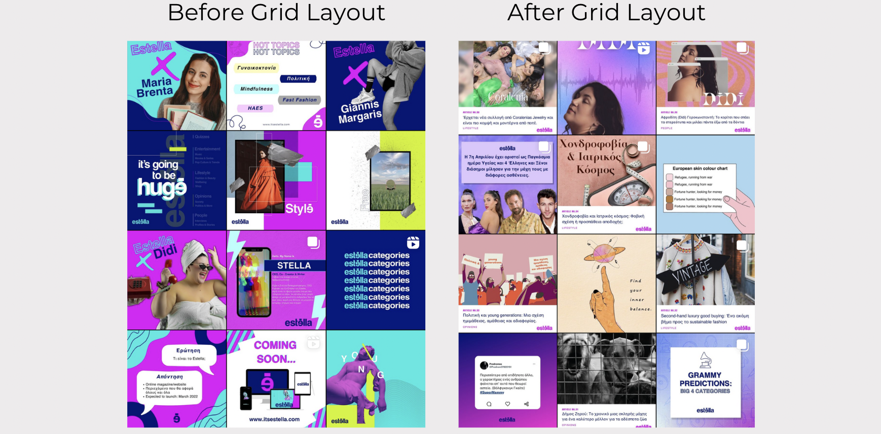 Since I also used a grid layout for my own design Instagram account, I was already familiar with the pros and cons of having a layout and was happy to pass that knowledge on to the Estella team.