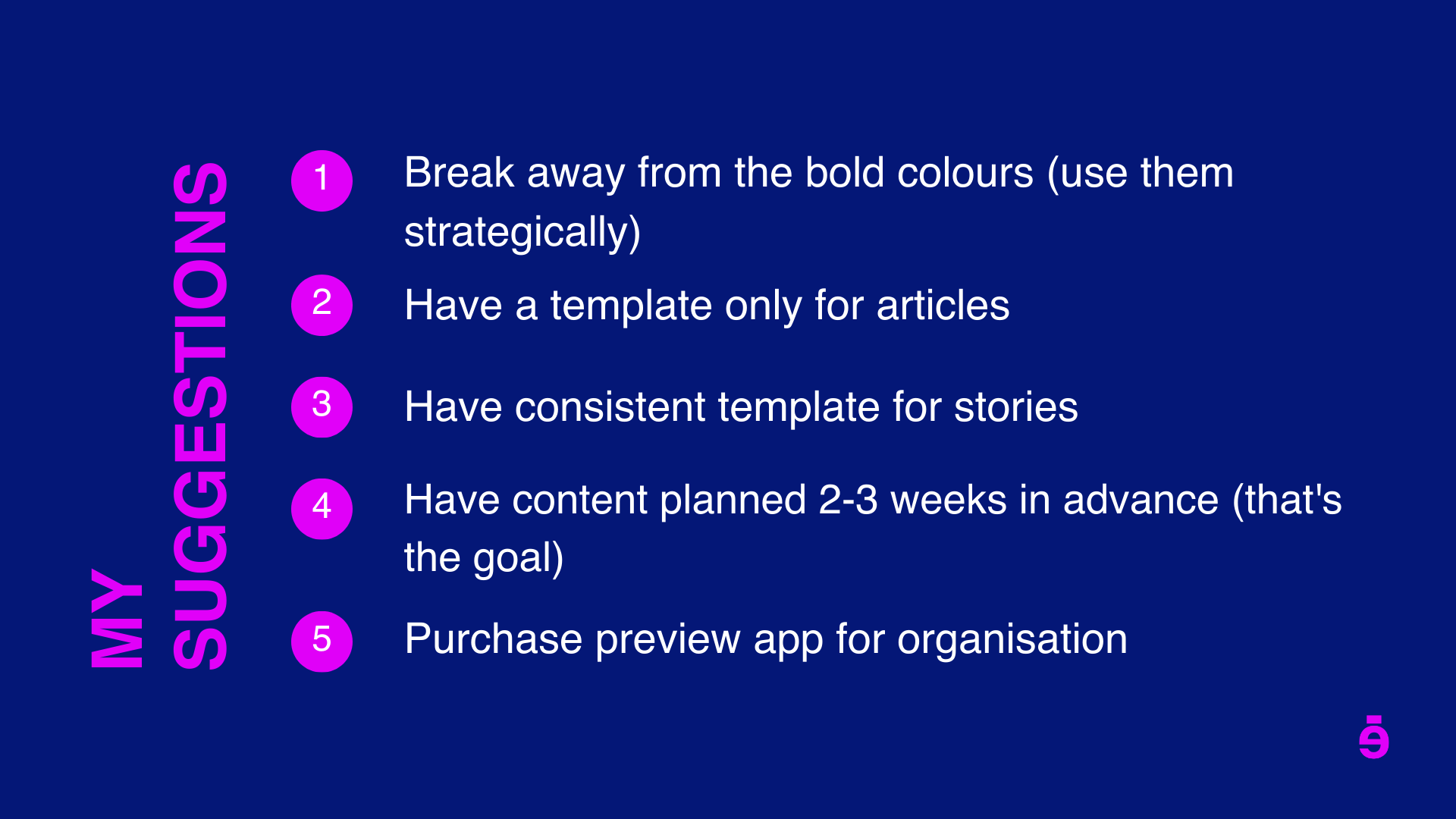 Make consistency a priority and have a posting schedule to allow us to have the post ready beforehand