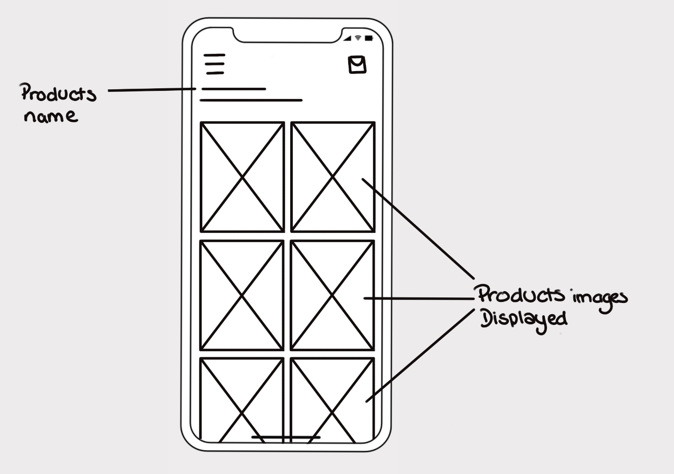 Before I started designing the user interfaces of the e-commerce app, I drew out wireframes of the design I was planning on prototyping. This allowed me to plan ahead for how I would implement the design principles into the interface.