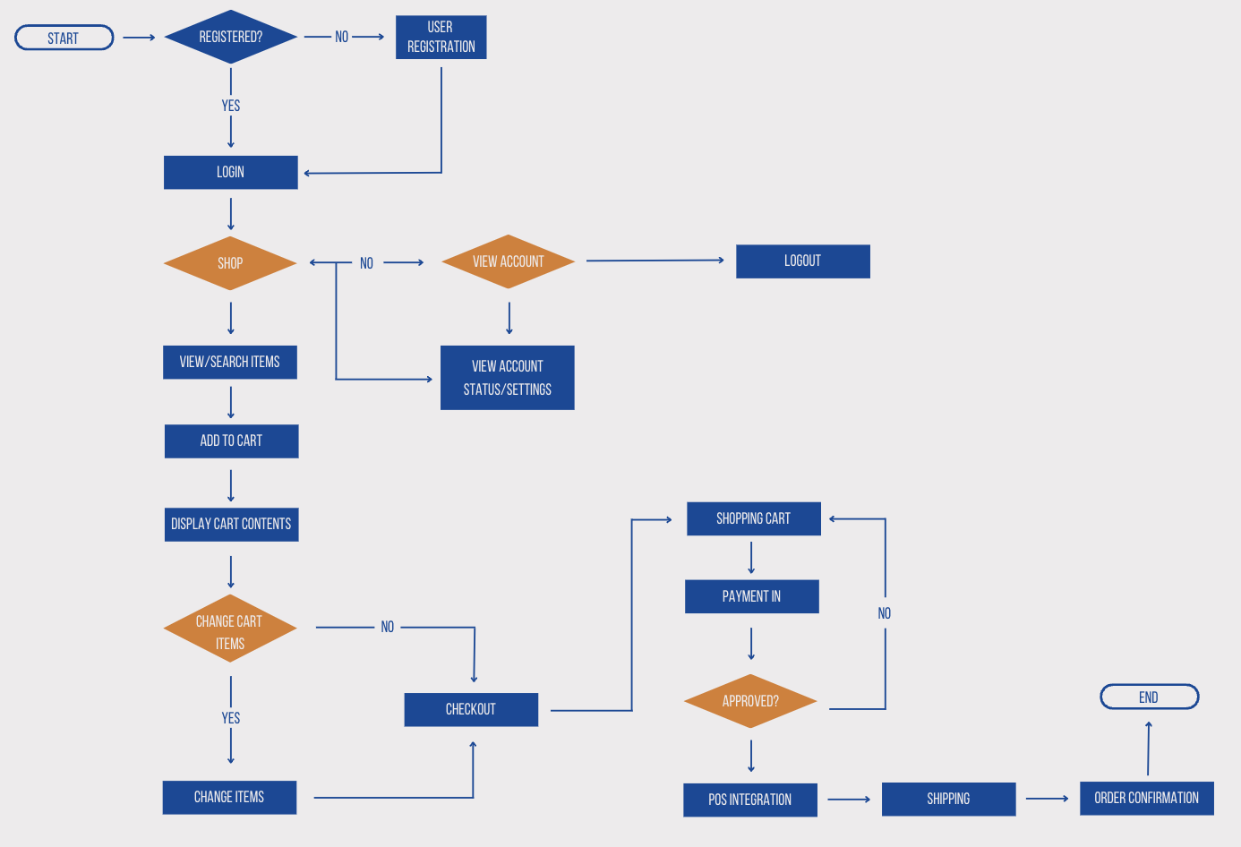 The following wireframe shows what the menu will look like for the e-commerce app.