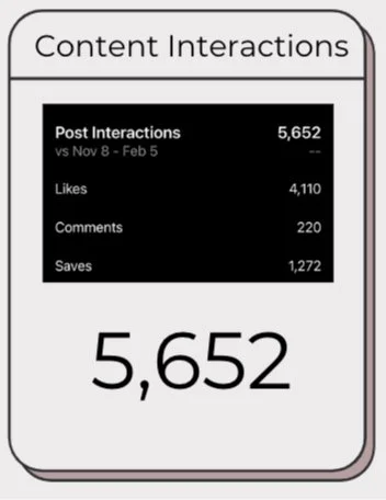 A natural progression from the 33k accounts reached is gaining engagement from all those accounts and I had a total of 5,797 engagements. Engagement includes all the likes, comments, and saves my account got over the two months of being live.