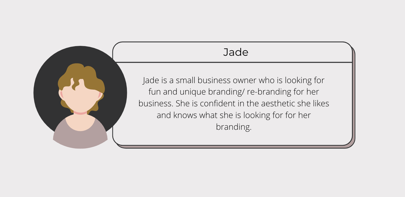 It was important to me to stay realistic with my persona. I am aware that as a designer my work is seen as more female-oriented, which is why my persona is female. I am also aware that I will not be attracting big, household companies (at least not during the beginning of my career), which is why Jade is a small business owner, in the age range of 18-35.