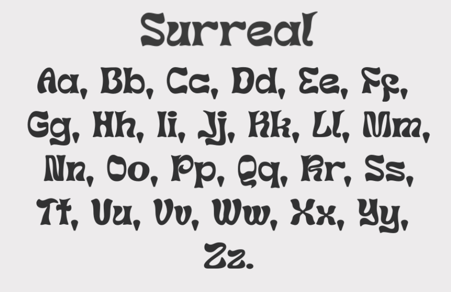 I knew that for my font, I wanted to bring the ‘Y2k’ aesthetic into my branding and the font “surreal” was the perfect font for me. It had the bold and chunky look that is typically associated with ‘Y2K’ fonts, but it was not too obvious.