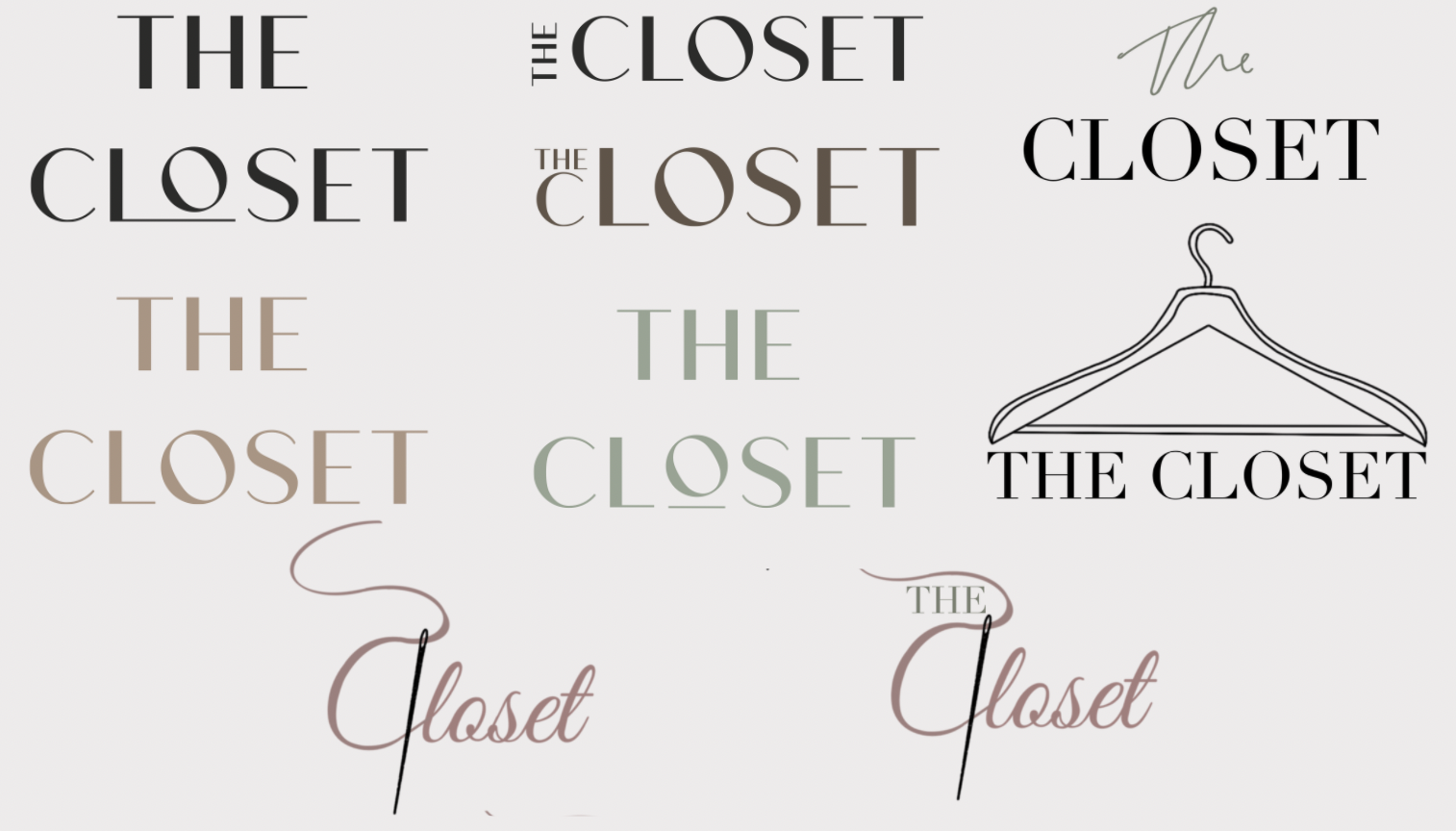 For my initial logo designs, I wanted to go for a more minimal, sophisticated look, similar to the vogue logo aesthetic, to fit in with the calm and neutral colour palette. When I showed the client these logos, the one that they preferred was the logo with the hanger on the right. Once they agreed on the logo. I went back and developed that idea further, as, in my opinion, the design of the hanger did not match the aesthetic I was going for.